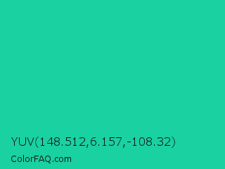 YUV 148.512,6.157,-108.32 Color is a normal cyan color and the nearest color is Caribbean Green #00cc99. Hex code #19d1a1 and RGB value is rgb(25,209,161). In RGB color space, this color is composed of 10% red, 82% green, 63% blue, In CMYK color space, this color is composed of 88% cyan, 0% magenta, 23% yellow , 18% black , In HSL color space, this color has a hue angle of 164° , 79% saturation and 46% lightness.