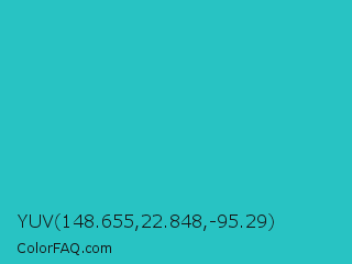 YUV 148.655,22.848,-95.29 Color is a normal cyan color and the nearest color is Java #1fc2c2. Hex code #28c3c3 and RGB value is rgb(40,195,195). In RGB color space, this color is composed of 16% red, 76% green, 76% blue, In CMYK color space, this color is composed of 79% cyan, 0% magenta, 0% yellow , 24% black , In HSL color space, this color has a hue angle of 180° , 66% saturation and 46% lightness.