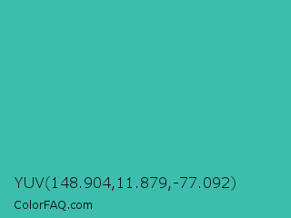 YUV 148.904,11.879,-77.092 Color is a normal cyan color and the nearest color is Puerto Rico #3fc1aa. Hex code #3dbdad and RGB value is rgb(61,189,173). In RGB color space, this color is composed of 24% red, 74% green, 68% blue, In CMYK color space, this color is composed of 68% cyan, 0% magenta, 8% yellow , 26% black , In HSL color space, this color has a hue angle of 173° , 51% saturation and 49% lightness.