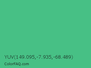 YUV 149.095,-7.935,-68.489 Color is a normal green color and the nearest color is Ocean Green #48bf91. Hex code #47c085 and RGB value is rgb(71,192,133). In RGB color space, this color is composed of 28% red, 75% green, 52% blue, In CMYK color space, this color is composed of 63% cyan, 0% magenta, 31% yellow , 25% black , In HSL color space, this color has a hue angle of 151° , 49% saturation and 52% lightness.