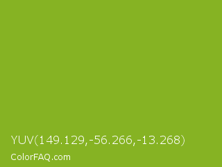 YUV 149.129,-56.266,-13.268 Color is a normal lime color and the nearest color is Lima #76bd17. Hex code #86b323 and RGB value is rgb(134,179,35). In RGB color space, this color is composed of 53% red, 70% green, 14% blue, In CMYK color space, this color is composed of 25% cyan, 0% magenta, 80% yellow , 30% black , In HSL color space, this color has a hue angle of 79° , 67% saturation and 42% lightness.