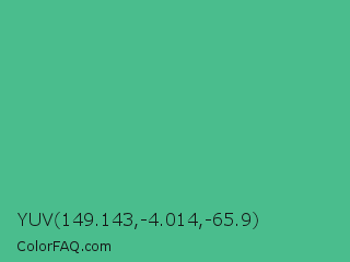 YUV 149.143,-4.014,-65.9 Color is a normal green color and the nearest color is Ocean Green #48bf91. Hex code #4abd8d and RGB value is rgb(74,189,141). In RGB color space, this color is composed of 29% red, 74% green, 55% blue, In CMYK color space, this color is composed of 61% cyan, 0% magenta, 25% yellow , 26% black , In HSL color space, this color has a hue angle of 155° , 47% saturation and 52% lightness.