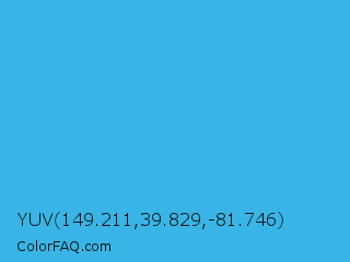 YUV 149.211,39.829,-81.746 Color is a normal blue color and the nearest color is Picton Blue #45b1e8. Hex code #38b5e6 and RGB value is rgb(56,181,230). In RGB color space, this color is composed of 22% red, 71% green, 90% blue, In CMYK color space, this color is composed of 76% cyan, 21% magenta, 0% yellow , 10% black , In HSL color space, this color has a hue angle of 197° , 78% saturation and 56% lightness.