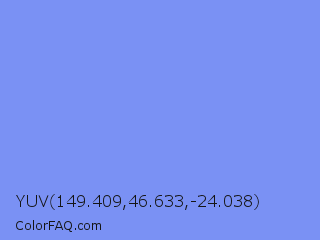 YUV 149.409,46.633,-24.038 Color is a light blue color and the nearest color is Portage #8b9fee. Hex code #7a91f4 and RGB value is rgb(122,145,244). In RGB color space, this color is composed of 48% red, 57% green, 96% blue, In CMYK color space, this color is composed of 50% cyan, 41% magenta, 0% yellow , 4% black , In HSL color space, this color has a hue angle of 229° , 85% saturation and 72% lightness.