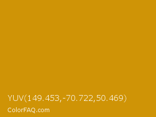 YUV 149.453,-70.722,50.469 Color is a normal orange color and the nearest color is Vivid Amber #cc9900. Hex code #cf9406 and RGB value is rgb(207,148,6). In RGB color space, this color is composed of 81% red, 58% green, 2% blue, In CMYK color space, this color is composed of 0% cyan, 29% magenta, 97% yellow , 19% black , In HSL color space, this color has a hue angle of 42° , 94% saturation and 42% lightness.