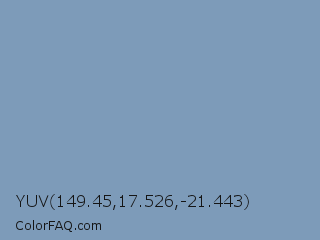 YUV 149.45,17.526,-21.443 Color is a light blue color and the nearest color is Bali Hai #859faf. Hex code #7d9bb9 and RGB value is rgb(125,155,185). In RGB color space, this color is composed of 49% red, 61% green, 73% blue, In CMYK color space, this color is composed of 32% cyan, 16% magenta, 0% yellow , 27% black , In HSL color space, this color has a hue angle of 210° , 30% saturation and 61% lightness.