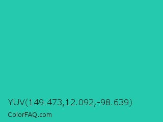 YUV 149.473,12.092,-98.639 Color is a normal cyan color and the nearest color is Java #1fc2c2. Hex code #25caae and RGB value is rgb(37,202,174). In RGB color space, this color is composed of 15% red, 79% green, 68% blue, In CMYK color space, this color is composed of 82% cyan, 0% magenta, 14% yellow , 21% black , In HSL color space, this color has a hue angle of 170° , 69% saturation and 47% lightness.