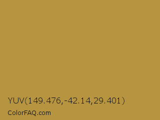 YUV 149.476,-42.14,29.401 Color is a normal orange color and the nearest color is Brass #b5a642. Hex code #b79540 and RGB value is rgb(183,149,64). In RGB color space, this color is composed of 72% red, 58% green, 25% blue, In CMYK color space, this color is composed of 0% cyan, 19% magenta, 65% yellow , 28% black , In HSL color space, this color has a hue angle of 43° , 48% saturation and 48% lightness.