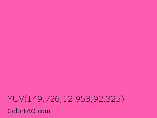 YUV 149.726,12.953,92.325 Color is a light rose color and the nearest color is Brilliant Rose #ff55a3. Hex code #ff5bb0 and RGB value is rgb(255,91,176). In RGB color space, this color is composed of 100% red, 36% green, 69% blue, In CMYK color space, this color is composed of 0% cyan, 64% magenta, 31% yellow , 0% black , In HSL color space, this color has a hue angle of 329° , 100% saturation and 68% lightness.