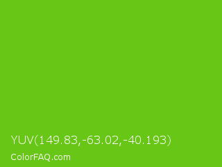 YUV 149.83,-63.02,-40.193 Color is a normal green color and the nearest color is Lima #76bd17. Hex code #68c616 and RGB value is rgb(104,198,22). In RGB color space, this color is composed of 41% red, 78% green, 9% blue, In CMYK color space, this color is composed of 47% cyan, 0% magenta, 89% yellow , 22% black , In HSL color space, this color has a hue angle of 92° , 80% saturation and 43% lightness.