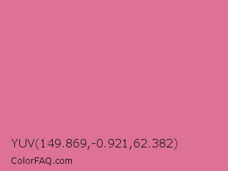 YUV 149.869,-0.921,62.382 Color is a light rose color and the nearest color is Pale Red Violet #db7093. Hex code #dd7294 and RGB value is rgb(221,114,148). In RGB color space, this color is composed of 87% red, 45% green, 58% blue, In CMYK color space, this color is composed of 0% cyan, 48% magenta, 33% yellow , 13% black , In HSL color space, this color has a hue angle of 341° , 61% saturation and 66% lightness.