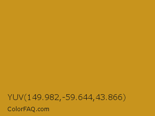 YUV 149.982,-59.644,43.866 Color is a normal orange color and the nearest color is Nugget #c59922. Hex code #c8941d and RGB value is rgb(200,148,29). In RGB color space, this color is composed of 78% red, 58% green, 11% blue, In CMYK color space, this color is composed of 0% cyan, 26% magenta, 86% yellow , 22% black , In HSL color space, this color has a hue angle of 42° , 75% saturation and 45% lightness.