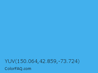 YUV 150.064,42.859,-73.724 Color is a normal blue color and the nearest color is Picton Blue #45b1e8. Hex code #42b0ed and RGB value is rgb(66,176,237). In RGB color space, this color is composed of 26% red, 69% green, 93% blue, In CMYK color space, this color is composed of 72% cyan, 26% magenta, 0% yellow , 7% black , In HSL color space, this color has a hue angle of 201° , 83% saturation and 59% lightness.