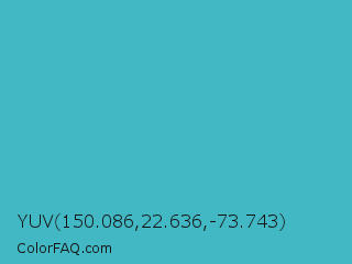 YUV 150.086,22.636,-73.743 Color is a normal cyan color and the nearest color is Pelorous #3eabbf. Hex code #42b8c4 and RGB value is rgb(66,184,196). In RGB color space, this color is composed of 26% red, 72% green, 77% blue, In CMYK color space, this color is composed of 66% cyan, 6% magenta, 0% yellow , 23% black , In HSL color space, this color has a hue angle of 186° , 52% saturation and 51% lightness.