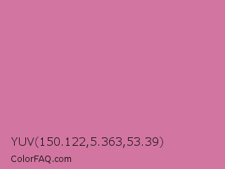 YUV 150.122,5.363,53.39 Color is a light rose color and the nearest color is Wild Orchid #d470a2. Hex code #d375a1 and RGB value is rgb(211,117,161). In RGB color space, this color is composed of 83% red, 46% green, 63% blue, In CMYK color space, this color is composed of 0% cyan, 45% magenta, 24% yellow , 17% black , In HSL color space, this color has a hue angle of 332° , 52% saturation and 64% lightness.