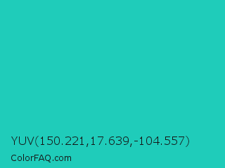 YUV 150.221,17.639,-104.557 Color is a normal cyan color and the nearest color is Java #1fc2c2. Hex code #1fccba and RGB value is rgb(31,204,186). In RGB color space, this color is composed of 12% red, 80% green, 73% blue, In CMYK color space, this color is composed of 85% cyan, 0% magenta, 9% yellow , 20% black , In HSL color space, this color has a hue angle of 174° , 74% saturation and 46% lightness.