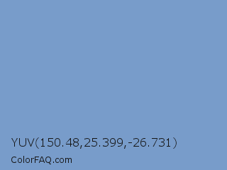 YUV 150.48,25.399,-26.731 Color is a light blue color and the nearest color is Dark Pastel Blue #779ecb. Hex code #789cca and RGB value is rgb(120,156,202). In RGB color space, this color is composed of 47% red, 61% green, 79% blue, In CMYK color space, this color is composed of 41% cyan, 23% magenta, 0% yellow , 21% black , In HSL color space, this color has a hue angle of 214° , 44% saturation and 63% lightness.