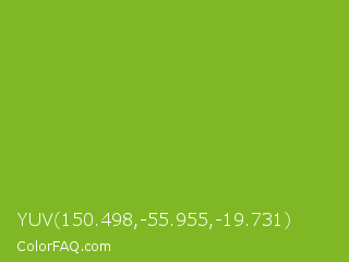 YUV 150.498,-55.955,-19.731 Color is a normal green color and the nearest color is Lima #76bd17. Hex code #80b825 and RGB value is rgb(128,184,37). In RGB color space, this color is composed of 50% red, 72% green, 15% blue, In CMYK color space, this color is composed of 30% cyan, 0% magenta, 80% yellow , 28% black , In HSL color space, this color has a hue angle of 83° , 67% saturation and 43% lightness.