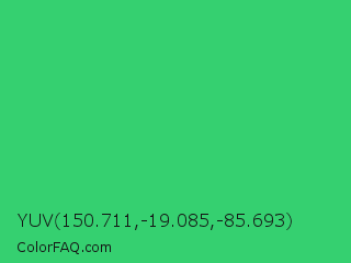 YUV 150.711,-19.085,-85.693 Color is a normal green color and the nearest color is UFO Green #3cd070. Hex code #35d070 and RGB value is rgb(53,208,112). In RGB color space, this color is composed of 21% red, 82% green, 44% blue, In CMYK color space, this color is composed of 75% cyan, 0% magenta, 46% yellow , 18% black , In HSL color space, this color has a hue angle of 143° , 62% saturation and 51% lightness.