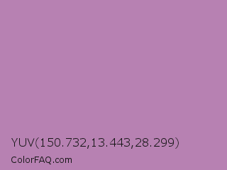 YUV 150.732,13.443,28.299 Color is a light magenta color and the nearest color is Opera Mauve #b784a7. Hex code #b781b2 and RGB value is rgb(183,129,178). In RGB color space, this color is composed of 72% red, 51% green, 70% blue, In CMYK color space, this color is composed of 0% cyan, 30% magenta, 3% yellow , 28% black , In HSL color space, this color has a hue angle of 306° , 27% saturation and 61% lightness.
