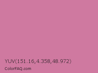 YUV 151.16,4.358,48.972 Color is a light rose color and the nearest color is Wild Orchid #d470a2. Hex code #cf79a0 and RGB value is rgb(207,121,160). In RGB color space, this color is composed of 81% red, 47% green, 63% blue, In CMYK color space, this color is composed of 0% cyan, 42% magenta, 23% yellow , 19% black , In HSL color space, this color has a hue angle of 333° , 47% saturation and 64% lightness.