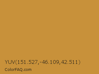 YUV 151.527,-46.109,42.511 Color is a normal orange color and the nearest color is Peru #cd853f. Hex code #c8913a and RGB value is rgb(200,145,58). In RGB color space, this color is composed of 78% red, 57% green, 23% blue, In CMYK color space, this color is composed of 0% cyan, 28% magenta, 71% yellow , 22% black , In HSL color space, this color has a hue angle of 37° , 56% saturation and 51% lightness.