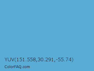 YUV 151.558,30.291,-55.74 Color is a normal blue color and the nearest color is Shakespeare #4eabd1. Hex code #58acd5 and RGB value is rgb(88,172,213). In RGB color space, this color is composed of 35% red, 67% green, 84% blue, In CMYK color space, this color is composed of 59% cyan, 19% magenta, 0% yellow , 16% black , In HSL color space, this color has a hue angle of 200° , 60% saturation and 59% lightness.