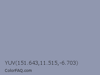 YUV 151.643,11.515,-6.703 Color is a light blue color and the nearest color is Cool Grey #8c92ac. Hex code #9097af and RGB value is rgb(144,151,175). In RGB color space, this color is composed of 56% red, 59% green, 69% blue, In CMYK color space, this color is composed of 18% cyan, 14% magenta, 0% yellow , 31% black , In HSL color space, this color has a hue angle of 226° , 16% saturation and 63% lightness.
