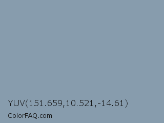 YUV 151.659,10.521,-14.61 Color is a normal blue color and the nearest color is Bali Hai #859faf. Hex code #879cad and RGB value is rgb(135,156,173). In RGB color space, this color is composed of 53% red, 61% green, 68% blue, In CMYK color space, this color is composed of 22% cyan, 10% magenta, 0% yellow , 32% black , In HSL color space, this color has a hue angle of 207° , 19% saturation and 60% lightness.