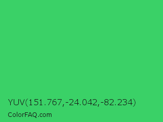 YUV 151.767,-24.042,-82.234 Color is a normal green color and the nearest color is UFO Green #3cd070. Hex code #3ad167 and RGB value is rgb(58,209,103). In RGB color space, this color is composed of 23% red, 82% green, 40% blue, In CMYK color space, this color is composed of 72% cyan, 0% magenta, 51% yellow , 18% black , In HSL color space, this color has a hue angle of 138° , 62% saturation and 52% lightness.