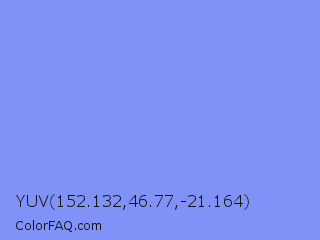 YUV 152.132,46.77,-21.164 Color is a light blue color and the nearest color is Portage #8b9fee. Hex code #8092f7 and RGB value is rgb(128,146,247). In RGB color space, this color is composed of 50% red, 57% green, 97% blue, In CMYK color space, this color is composed of 48% cyan, 41% magenta, 0% yellow , 3% black , In HSL color space, this color has a hue angle of 231° , 88% saturation and 74% lightness.