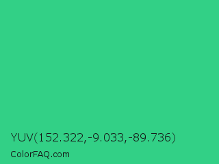 YUV 152.322,-9.033,-89.736 Color is a normal green color and the nearest color is Shamrock #33cc99. Hex code #32d086 and RGB value is rgb(50,208,134). In RGB color space, this color is composed of 20% red, 82% green, 53% blue, In CMYK color space, this color is composed of 76% cyan, 0% magenta, 36% yellow , 18% black , In HSL color space, this color has a hue angle of 152° , 63% saturation and 51% lightness.