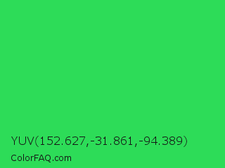 YUV 152.627,-31.861,-94.389 Color is a normal green color and the nearest color is UFO Green #3cd070. Hex code #2ddc58 and RGB value is rgb(45,220,88). In RGB color space, this color is composed of 18% red, 86% green, 35% blue, In CMYK color space, this color is composed of 80% cyan, 0% magenta, 60% yellow , 14% black , In HSL color space, this color has a hue angle of 135° , 71% saturation and 52% lightness.