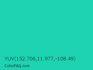 YUV 152.706,11.977,-108.49 Color is a normal cyan color and the nearest color is Java #1fc2c2. Hex code #1dd3b1 and RGB value is rgb(29,211,177). In RGB color space, this color is composed of 11% red, 83% green, 69% blue, In CMYK color space, this color is composed of 86% cyan, 0% magenta, 16% yellow , 17% black , In HSL color space, this color has a hue angle of 169° , 76% saturation and 47% lightness.