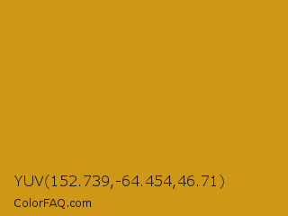 YUV 152.739,-64.454,46.71 Color is a normal orange color and the nearest color is Pizza #c99415. Hex code #ce9716 and RGB value is rgb(206,151,22). In RGB color space, this color is composed of 81% red, 59% green, 9% blue, In CMYK color space, this color is composed of 0% cyan, 27% magenta, 89% yellow , 19% black , In HSL color space, this color has a hue angle of 42° , 81% saturation and 45% lightness.