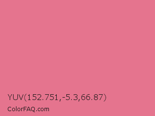YUV 152.751,-5.3,66.87 Color is a light red color and the nearest color is Bright Blush #e47698. Hex code #e5748e and RGB value is rgb(229,116,142). In RGB color space, this color is composed of 90% red, 45% green, 56% blue, In CMYK color space, this color is composed of 0% cyan, 49% magenta, 38% yellow , 10% black , In HSL color space, this color has a hue angle of 346° , 68% saturation and 68% lightness.