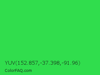 YUV 152.857,-37.398,-91.96 Color is a normal green color and the nearest color is Lime Green #32cd32. Hex code #30dd4d and RGB value is rgb(48,221,77). In RGB color space, this color is composed of 19% red, 87% green, 30% blue, In CMYK color space, this color is composed of 78% cyan, 0% magenta, 65% yellow , 13% black , In HSL color space, this color has a hue angle of 130° , 72% saturation and 53% lightness.