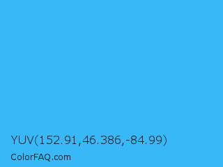YUV 152.91,46.386,-84.99 Color is a normal blue color and the nearest color is Picton Blue #45b1e8. Hex code #38b8f7 and RGB value is rgb(56,184,247). In RGB color space, this color is composed of 22% red, 72% green, 97% blue, In CMYK color space, this color is composed of 77% cyan, 26% magenta, 0% yellow , 3% black , In HSL color space, this color has a hue angle of 200° , 92% saturation and 59% lightness.
