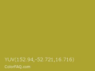 YUV 152.94,-52.721,16.716 Color is a normal yellow color and the nearest color is Lemon Ginger #ac9e22. Hex code #aca42e and RGB value is rgb(172,164,46). In RGB color space, this color is composed of 67% red, 64% green, 18% blue, In CMYK color space, this color is composed of 0% cyan, 5% magenta, 73% yellow , 33% black , In HSL color space, this color has a hue angle of 56° , 58% saturation and 43% lightness.