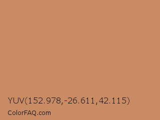 YUV 152.978,-26.611,42.115 Color is a normal orange color and the nearest color is Antique Brass #c88a65. Hex code #c98b63 and RGB value is rgb(201,139,99). In RGB color space, this color is composed of 79% red, 55% green, 39% blue, In CMYK color space, this color is composed of 0% cyan, 31% magenta, 51% yellow , 21% black , In HSL color space, this color has a hue angle of 24° , 49% saturation and 59% lightness.