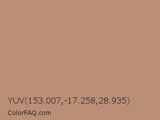 YUV 153.007,-17.258,28.935 Color is a normal orange color and the nearest color is Light Taupe #b38b6d. Hex code #ba8f76 and RGB value is rgb(186,143,118). In RGB color space, this color is composed of 73% red, 56% green, 46% blue, In CMYK color space, this color is composed of 0% cyan, 23% magenta, 37% yellow , 27% black , In HSL color space, this color has a hue angle of 22° , 33% saturation and 60% lightness.