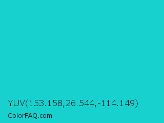 YUV 153.158,26.544,-114.149 Color is a normal cyan color and the nearest color is Java #1fc2c2. Hex code #17d1cf and RGB value is rgb(23,209,207). In RGB color space, this color is composed of 9% red, 82% green, 81% blue, In CMYK color space, this color is composed of 89% cyan, 0% magenta, 1% yellow , 18% black , In HSL color space, this color has a hue angle of 179° , 80% saturation and 45% lightness.