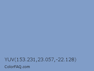 YUV 153.231,23.057,-22.128 Color is a light blue color and the nearest color is Dark Pastel Blue #779ecb. Hex code #809dc8 and RGB value is rgb(128,157,200). In RGB color space, this color is composed of 50% red, 62% green, 78% blue, In CMYK color space, this color is composed of 36% cyan, 22% magenta, 0% yellow , 22% black , In HSL color space, this color has a hue angle of 216° , 40% saturation and 64% lightness.