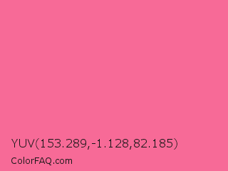 YUV 153.289,-1.128,82.185 Color is a light rose color and the nearest color is Light Crimson #f56991. Hex code #f76a97 and RGB value is rgb(247,106,151). In RGB color space, this color is composed of 97% red, 42% green, 59% blue, In CMYK color space, this color is composed of 0% cyan, 57% magenta, 39% yellow , 3% black , In HSL color space, this color has a hue angle of 341° , 90% saturation and 69% lightness.