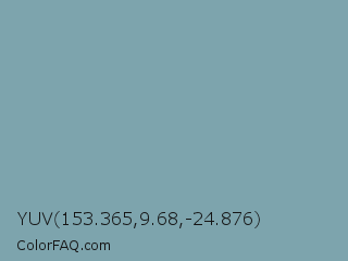 YUV 153.365,9.68,-24.876 Color is a normal cyan color and the nearest color is Gumbo #7ca1a6. Hex code #7da4ad and RGB value is rgb(125,164,173). In RGB color space, this color is composed of 49% red, 64% green, 68% blue, In CMYK color space, this color is composed of 28% cyan, 5% magenta, 0% yellow , 32% black , In HSL color space, this color has a hue angle of 191° , 23% saturation and 58% lightness.