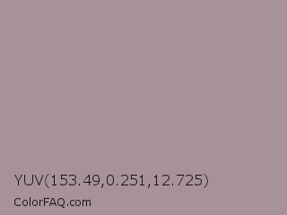 YUV 153.49,0.251,12.725 Color is a light rose color and the nearest color is Dusty Gray #a8989b. Hex code #a8929a and RGB value is rgb(168,146,154). In RGB color space, this color is composed of 66% red, 57% green, 60% blue, In CMYK color space, this color is composed of 0% cyan, 13% magenta, 8% yellow , 34% black , In HSL color space, this color has a hue angle of 338° , 11% saturation and 62% lightness.