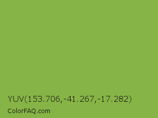 YUV 153.706,-41.267,-17.282 Color is a normal green color and the nearest color is Sushi #87ab39. Hex code #86b446 and RGB value is rgb(134,180,70). In RGB color space, this color is composed of 53% red, 71% green, 27% blue, In CMYK color space, this color is composed of 26% cyan, 0% magenta, 61% yellow , 29% black , In HSL color space, this color has a hue angle of 85° , 44% saturation and 49% lightness.