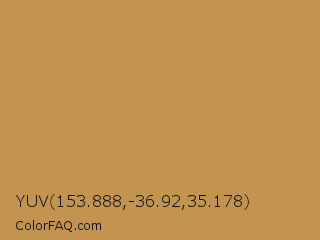 YUV 153.888,-36.92,35.178 Color is a normal orange color and the nearest color is Aztec Gold #c39953. Hex code #c2944f and RGB value is rgb(194,148,79). In RGB color space, this color is composed of 76% red, 58% green, 31% blue, In CMYK color space, this color is composed of 0% cyan, 24% magenta, 59% yellow , 24% black , In HSL color space, this color has a hue angle of 36° , 49% saturation and 54% lightness.