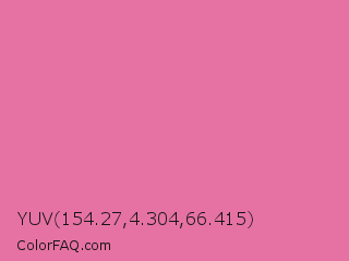 YUV 154.27,4.304,66.415 Color is a light rose color and the nearest color is Thulian Pink #de6fa1. Hex code #e672a3 and RGB value is rgb(230,114,163). In RGB color space, this color is composed of 90% red, 45% green, 64% blue, In CMYK color space, this color is composed of 0% cyan, 50% magenta, 29% yellow , 10% black , In HSL color space, this color has a hue angle of 335° , 70% saturation and 67% lightness.