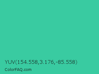 YUV 154.558,3.176,-85.558 Color is a normal green color and the nearest color is Shamrock #33cc99. Hex code #39cba1 and RGB value is rgb(57,203,161). In RGB color space, this color is composed of 22% red, 80% green, 63% blue, In CMYK color space, this color is composed of 72% cyan, 0% magenta, 21% yellow , 20% black , In HSL color space, this color has a hue angle of 163° , 58% saturation and 51% lightness.